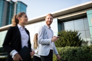 Business colleagues walkin outside